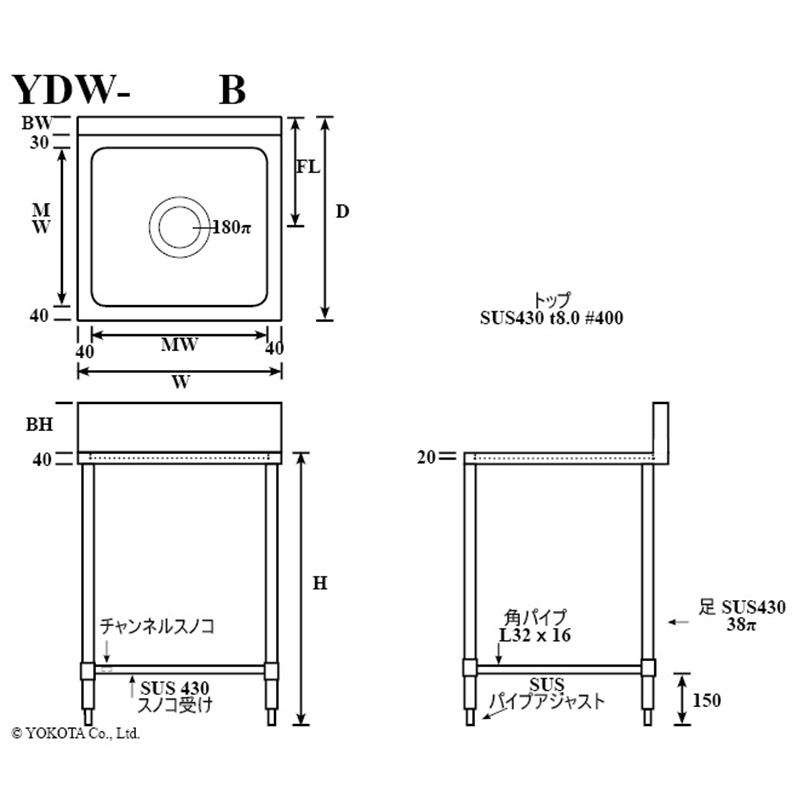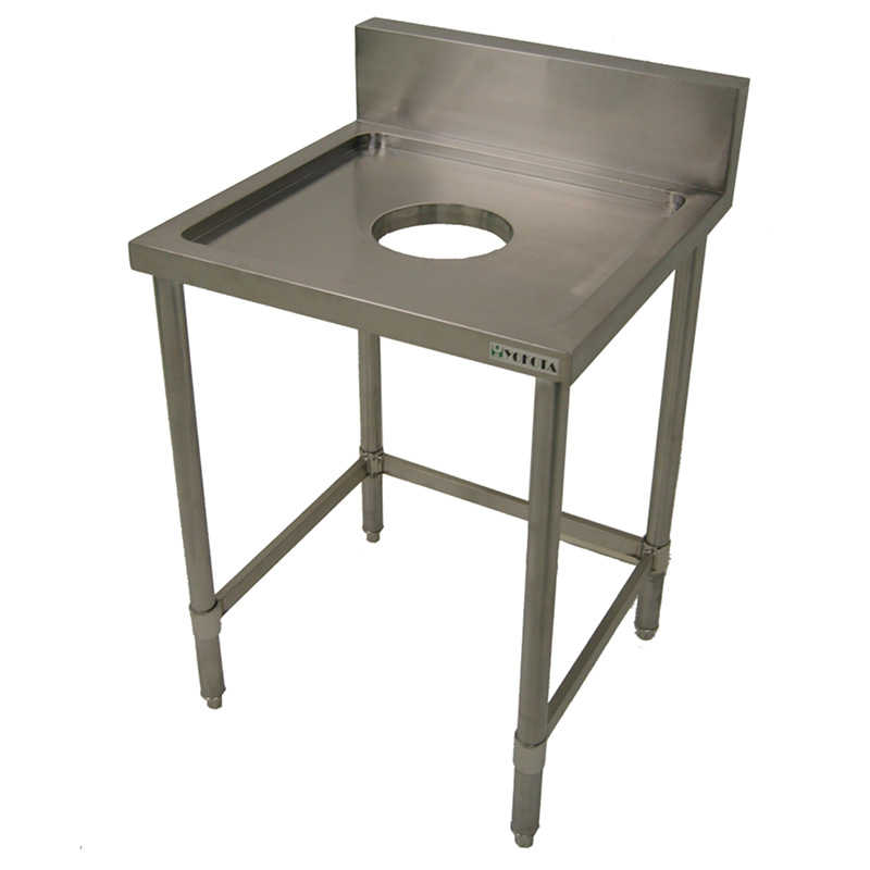 Commercial dust table with backguard. This model, equipped with a backguard, is ideal for wall-side installation. It features pipe legs for superior stability. Made of SUS430 stainless steel, it is suitable for use in restaurants and other facilities. A wide range of sizes is available, allowing you to choose according to your installation space.