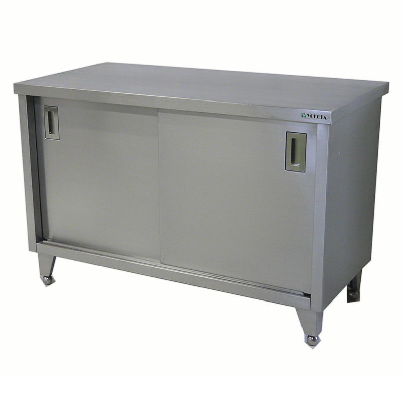 Stainless steel preparation table with sliding doors. Available in 12 sizes.