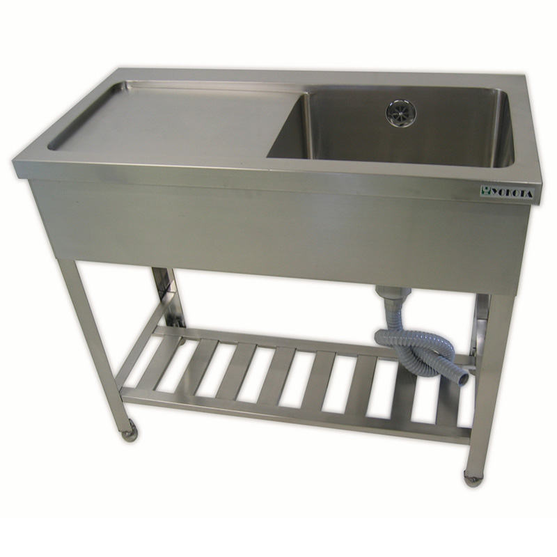 Stainless steel single bowl sink with drainboard. Available in 13 sizes.