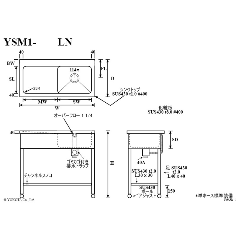 バックガード・シンク:90×710×620mm