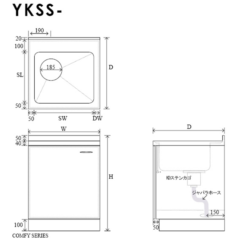 Stainless steel system kitchen sink. Choose from two heights (800mm/850mm). Optional knife rack (¥10