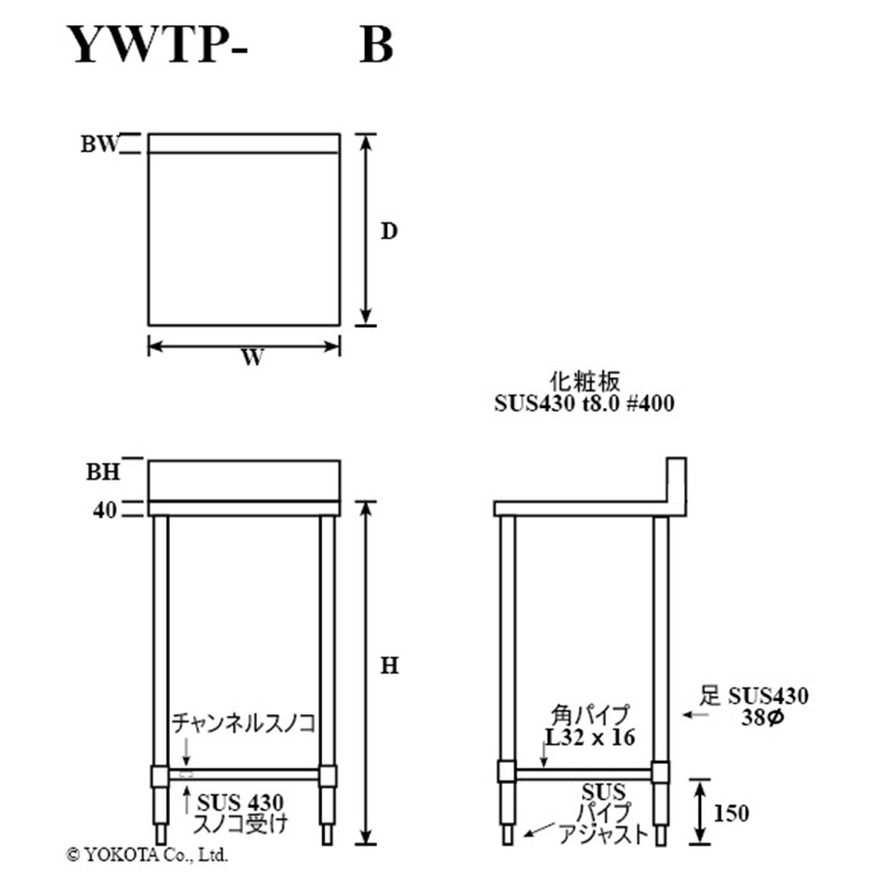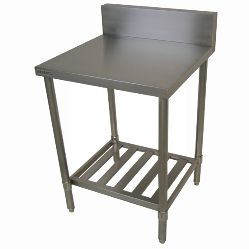 Commercial Work Table BG Type, Pipe Legs. Ideal for installation against walls with a back guard. The pipe leg type provides excellent stability. Made of SUS430 stainless steel, it is suitable for cooking operations in restaurants and facilities. Available in a wide range of sizes to fit your installation space.