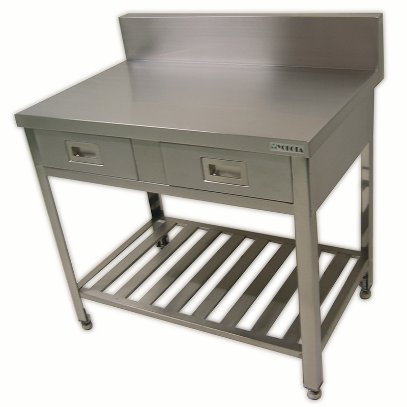 Stainless steel work table. With drawer. Includes backsplash. Available in 12 sizes.