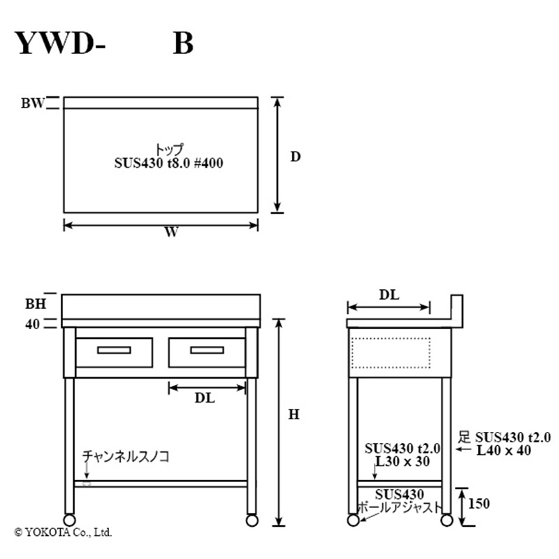 | Model | W (mm) | D (mm) | H (mm) | BH (mm) | BW (mm) | DL (mm) | DW (mm) | 引出の数 (個) | Price | Quantity | |