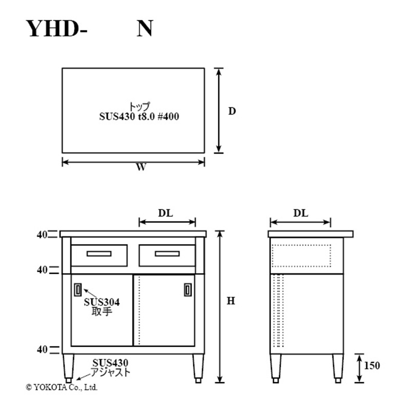 | Model | W (mm) | D (mm) | H (mm) | BH (mm) | BW (mm) | DL (mm) | DW (mm) | 引出の数 (個) | Price | Quantity | |