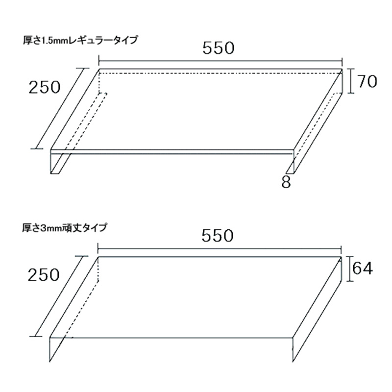 厚さ1.5mmのレギュラータイプと、CRTモニターなど重量物にも対応できる3.0mmの頑丈タイプの2種類をご用意しております。